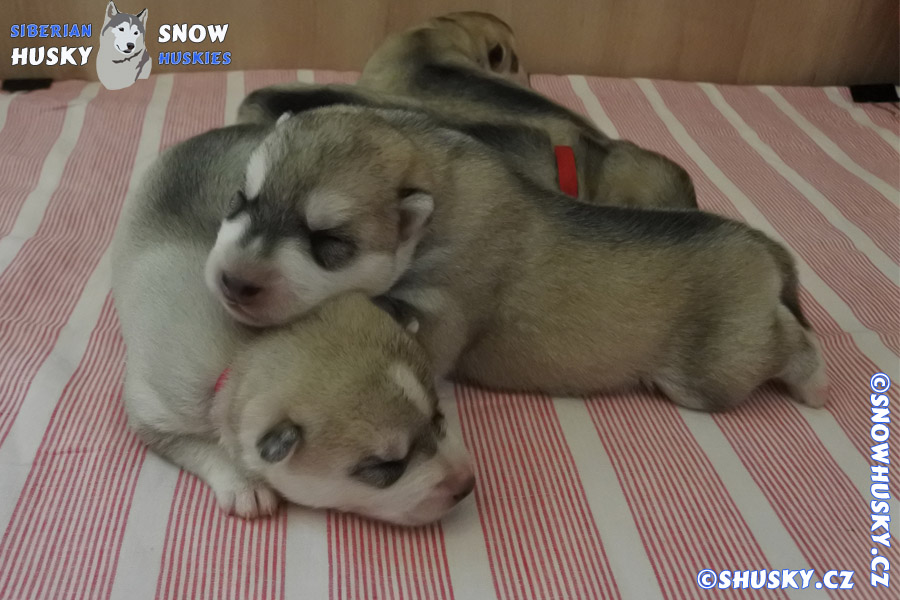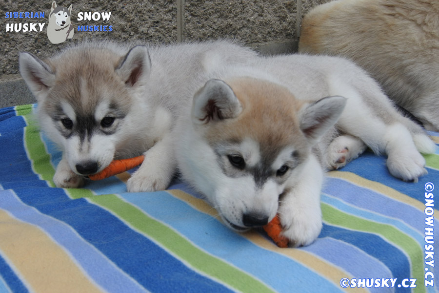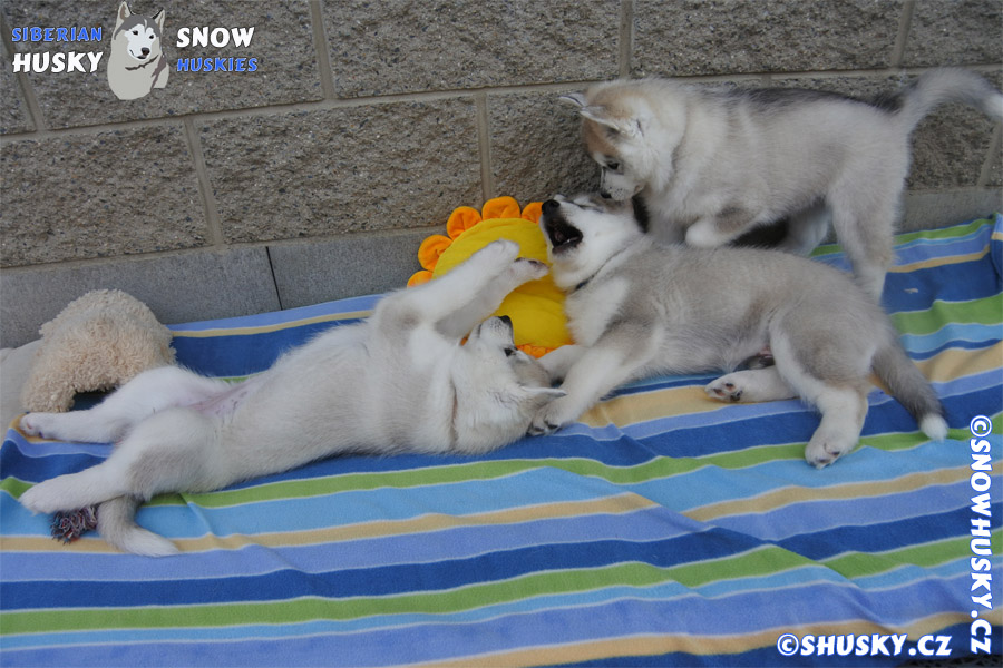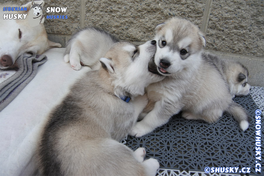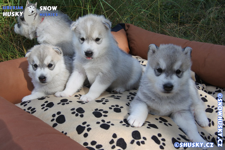 4.8. se narodil Cattie čtyřlístek - 3 holky a 1 kluk, všichni vypadají dost podobně a budou šedobílí. Jedna holka bude tahat ve spřežení opět s ostatními a zbytek pejsků půjde do světa.